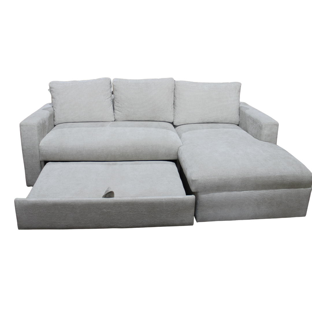 Sofá cama Nuit Sofá tapizado en tela suave y resistente. Su estructura está fabricada en madera sólida natural, con hule espuma de alta densidad (27 kg) para mayor confort. Su diseño en forma de L incluye cama deslizable que al extenderse alcanza tamaño queen. Ideal para optimizar tu espacio con funcionalidad y estilo. 📏 Medidas: 240 cm largo × 100 cm alto × 150 cm profundidad.