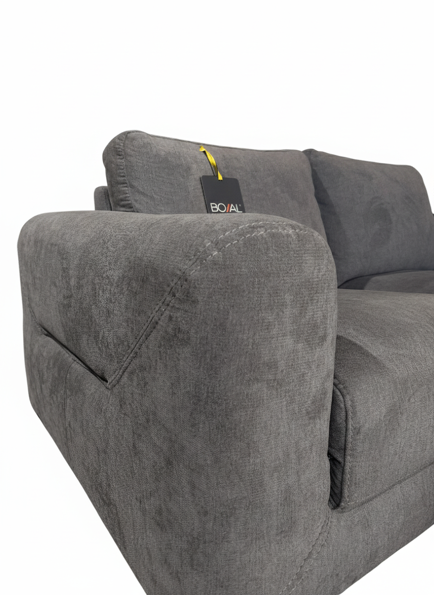 Loveseat Tamara en color gris obscuro combina elegancia y comodidad en un diseño moderno y versátil. Su tapizado en tono sobrio se adapta a diferentes estilos de decoración, mientras que el detalle de costura lateral le aporta un toque distintivo y sofisticado. Ideal para crear un ambiente acogedor y con carácter en tu hogar.